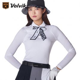 Volvik高尔夫翻折领冰感薄款透气 冰袖可拆丝巾蝴蝶结系带T恤长袖