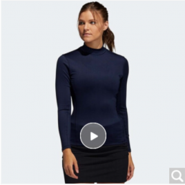 阿迪达斯Adidas高尔夫服装女士休闲运动长袖内衣 紧身衣 打底衫长袖半高领T恤 FS6321