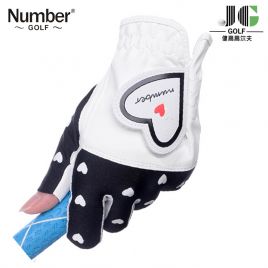 number 高尔夫手套 女士 漏指手套 透气防滑 golf 双手PU手套