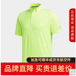 【20新品】Adidas阿迪达斯高尔夫服装男士短袖T恤翻领golf户外上衣 FJ3837 荧光黄 M